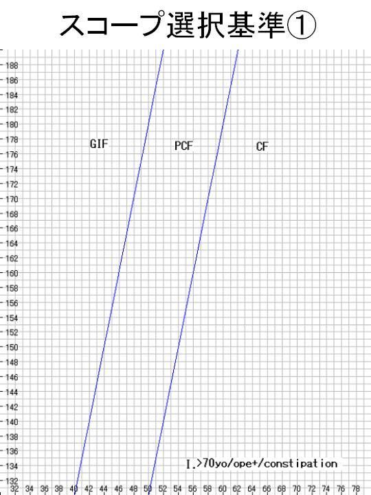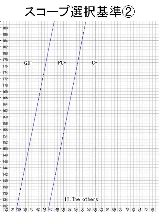 ワンパターンメソッドでは患者さんの身長と体重から下の表に従って使用するスコープを分けています。